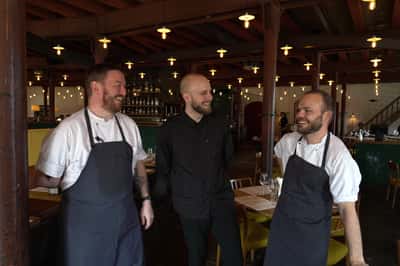 The restaurants is spacious and can host almost 200 people at the same time. It still holds the original look and feel - with respect for it's history. For instance the old elevator still stands - and is now used as a wine cooler. The interior is characterized by furniture that has origins in Danish design