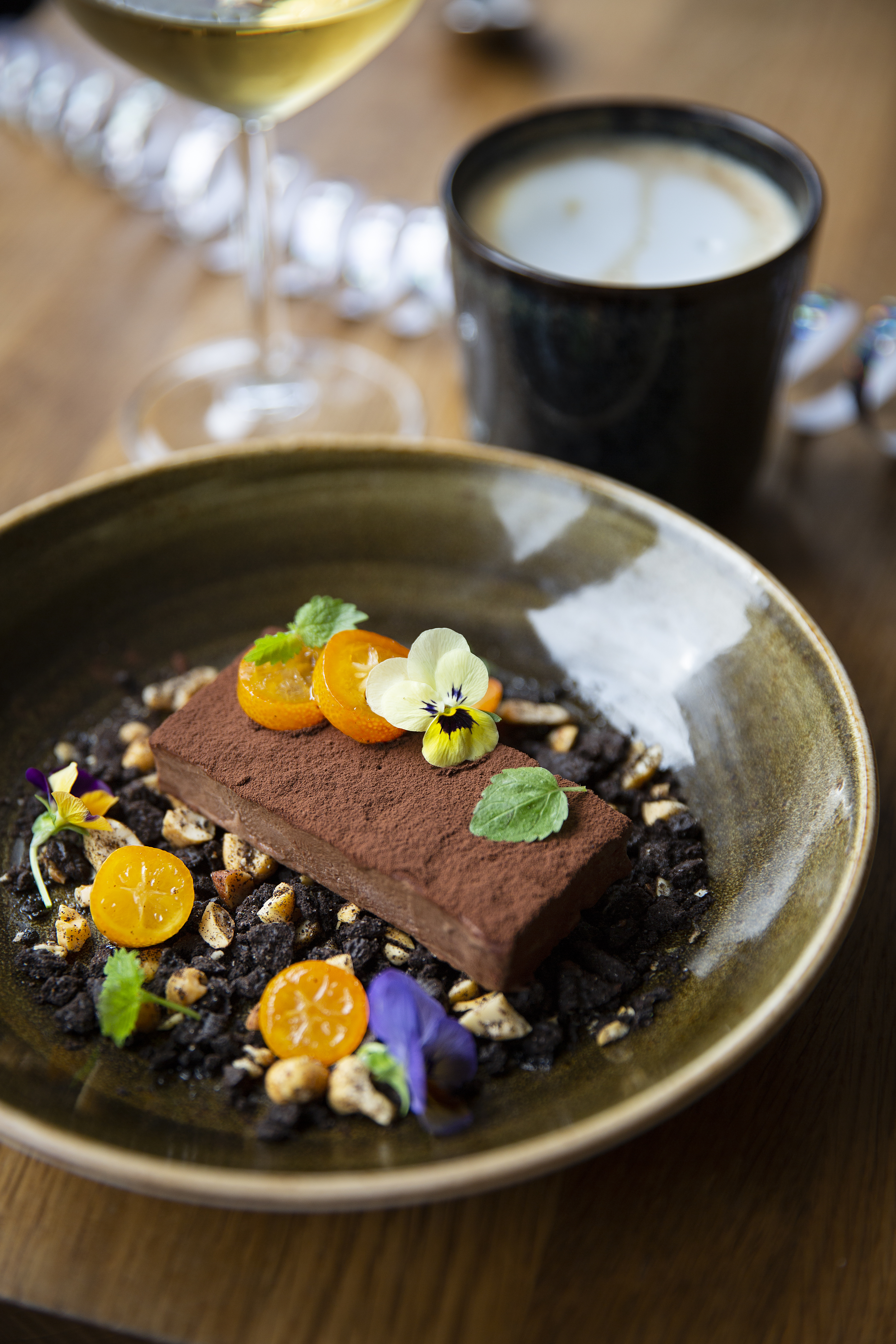 Nyd en klassisk eller vegetarisk nytårsmenu med blinis, carpaccio, pighvar/selleribøf, oksemørbrad og lun chokoladekage—med valgfri vinmenu. Reserver jeres plads.