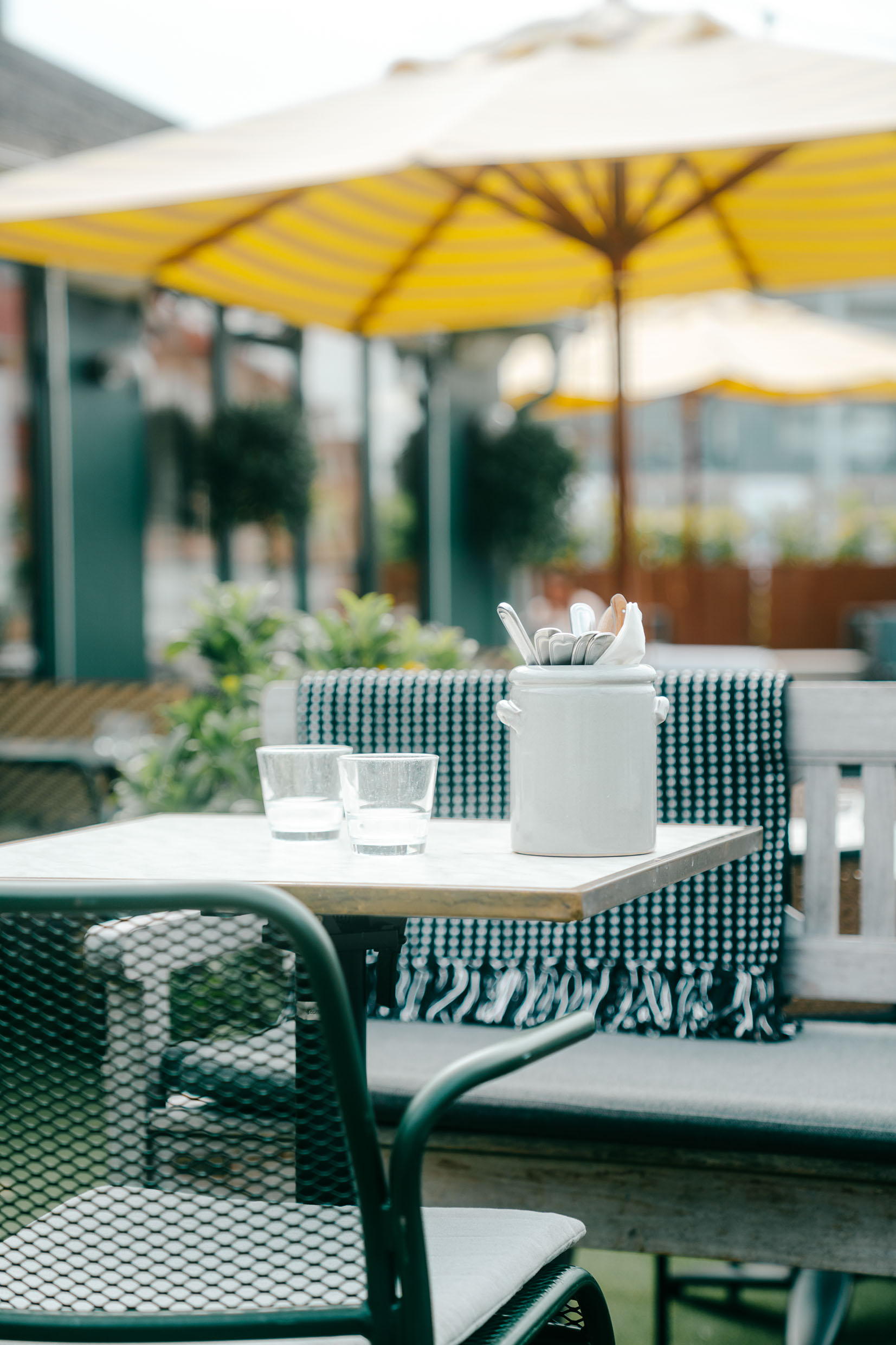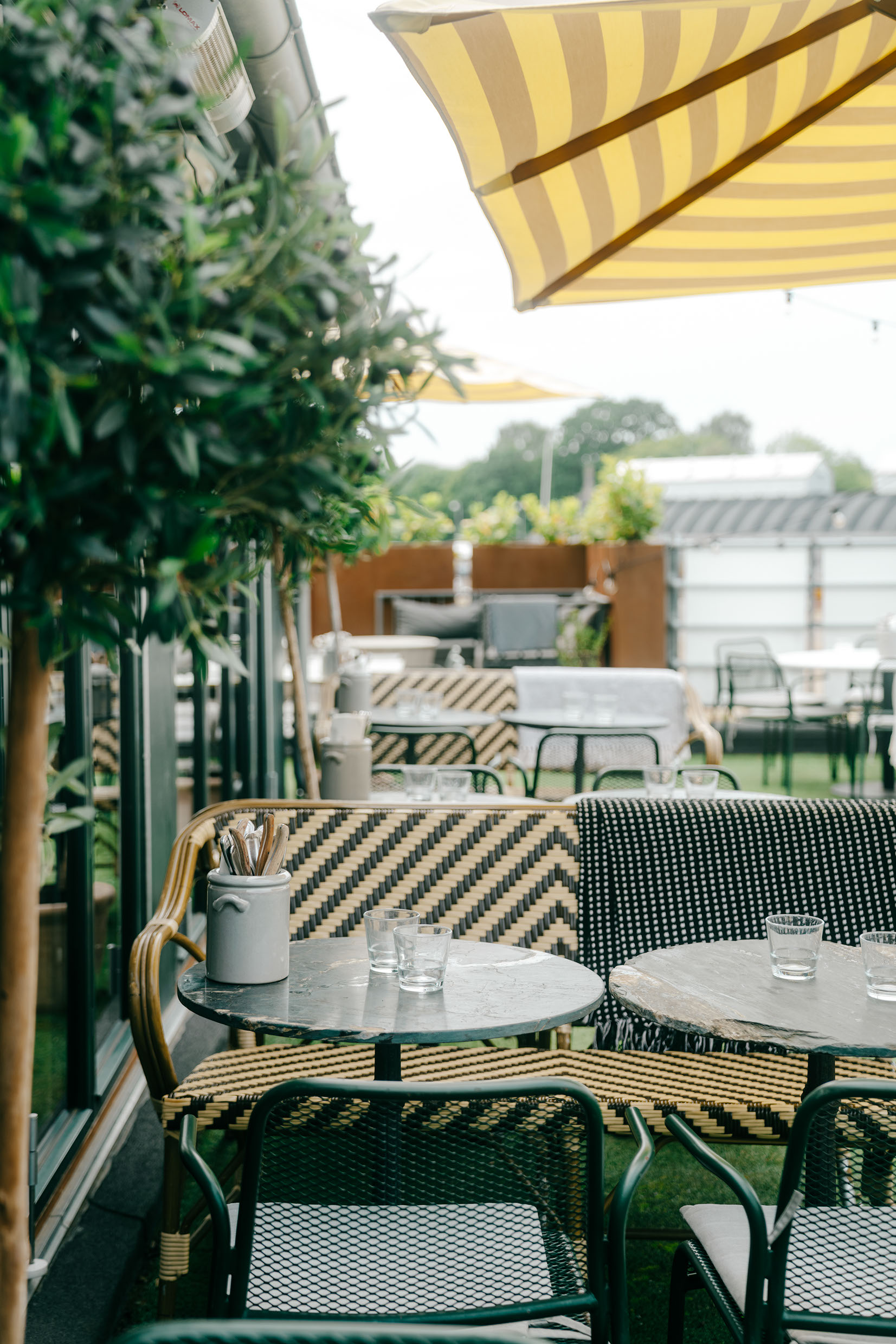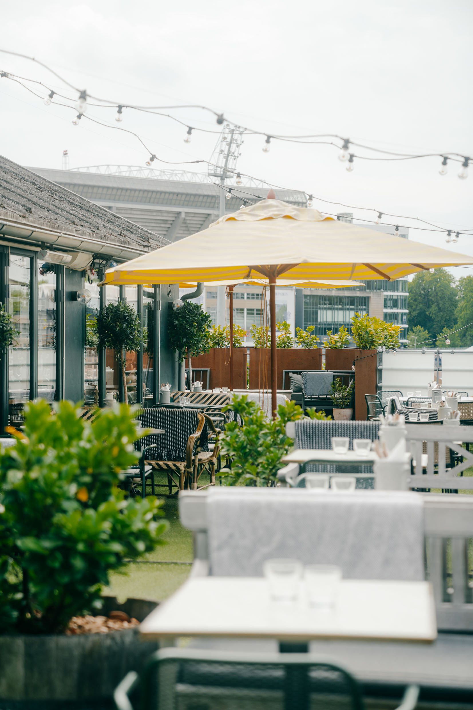 Det største siddeområde er i Orangeriet, hvor du har udsigt i alle retninger. For på den anden side af panoramavinduer, ligger den store udendørs tagterrasse, hvor du om sommeren kan sidde under lyskæder og åben himmel.